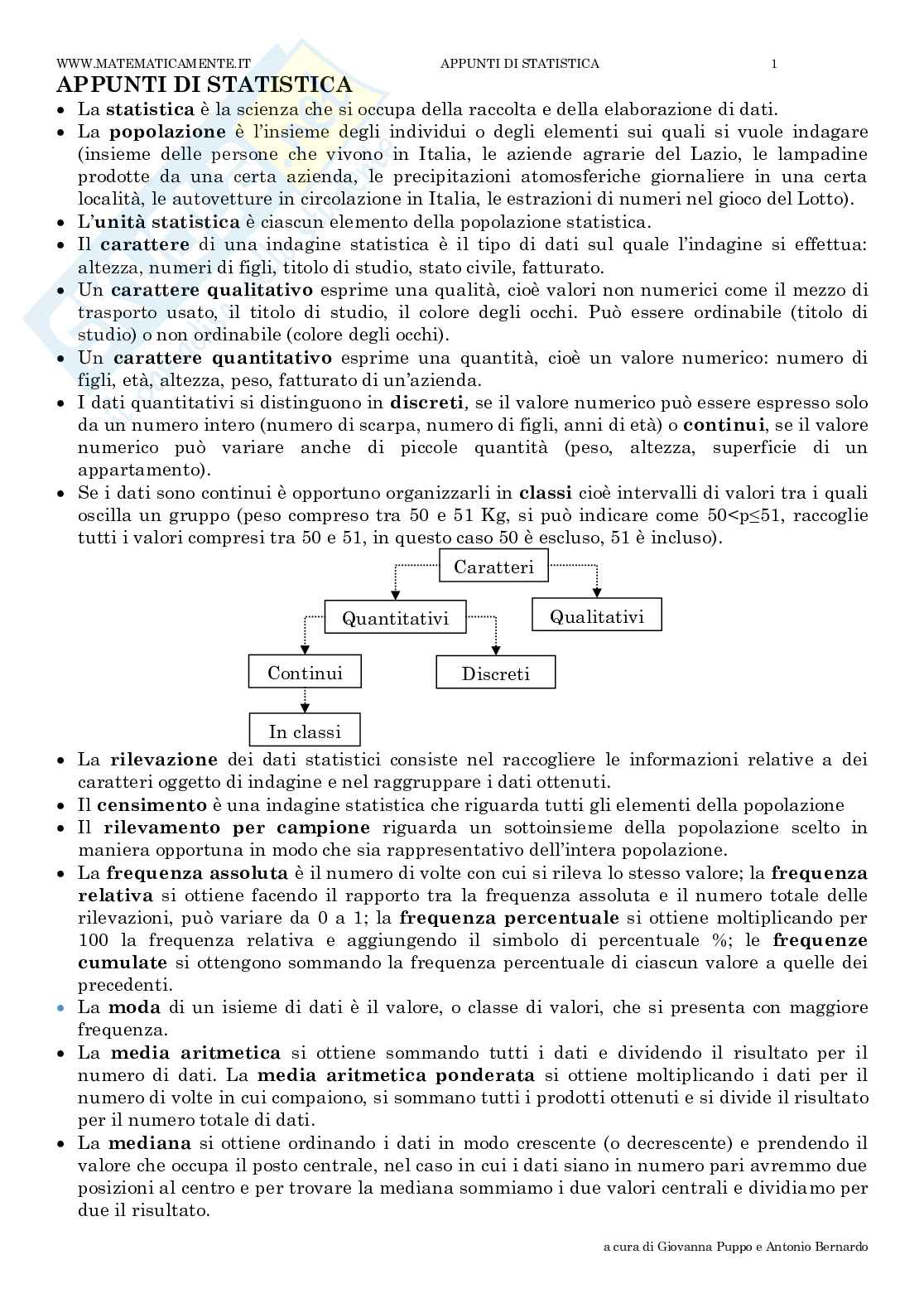 WWW.MATEMATICAMENTE.IT APPUNTI DI STATISTICA 1