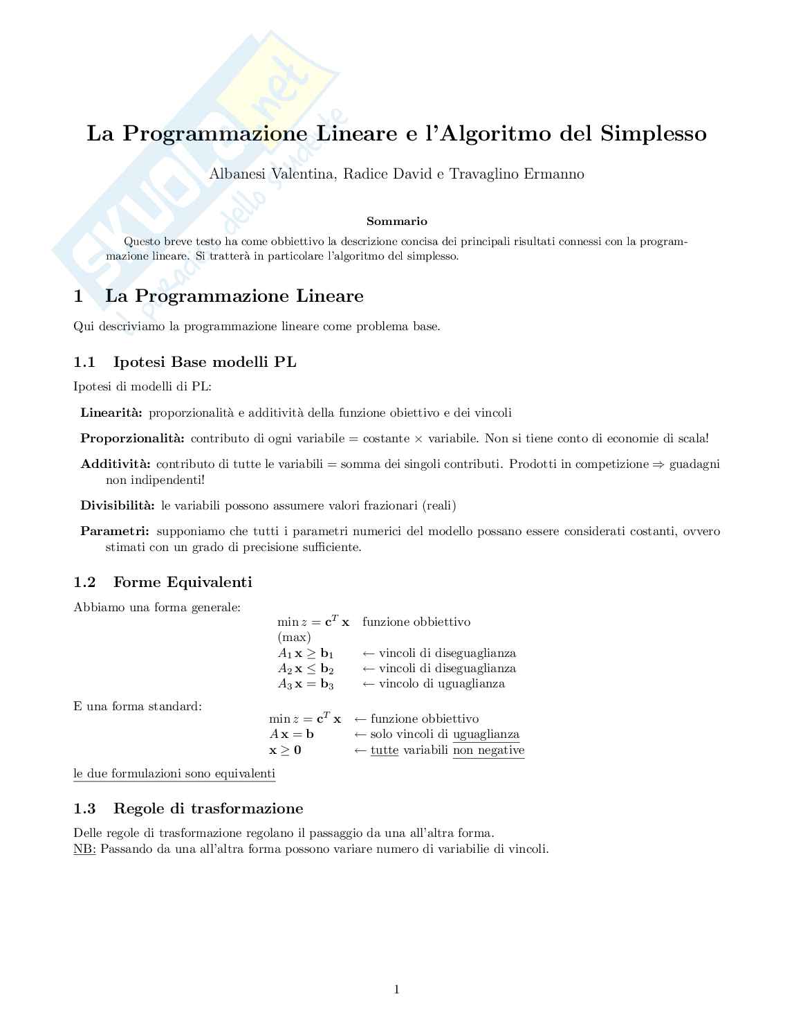 funzione obbiettivo. In pratica si dimostra che, purché il problema non sia illimitato, con un numero finito di cambi