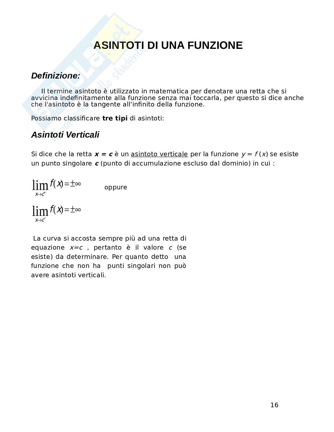 avvicina indefinitamente alla funzione senza mai toccarla, per questo si dice anche