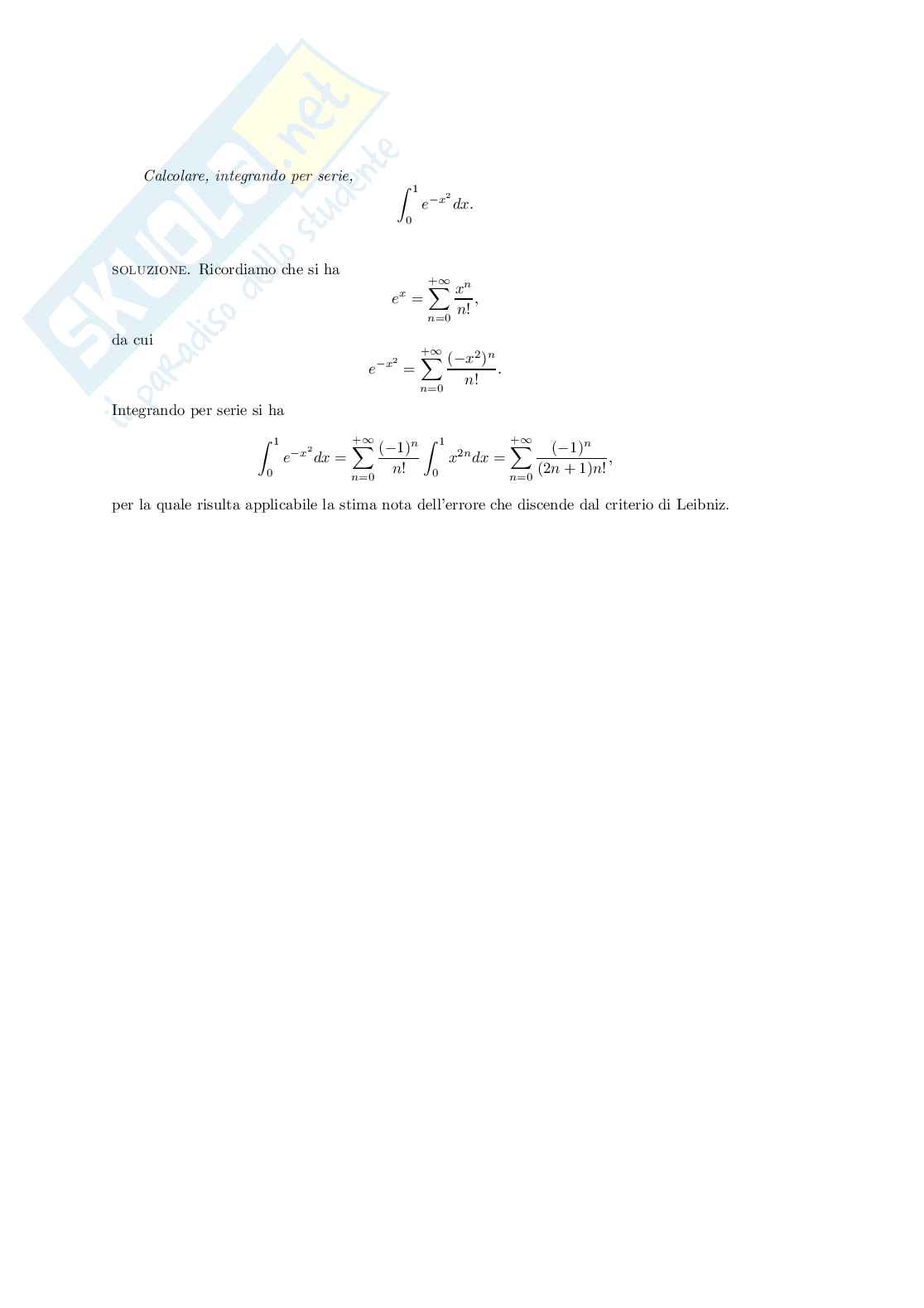 Serie: Calcolare, integrando per serie, [math]{\int_{{0}}^{{1}}}{e}^{{-{x}^{2}}}{\left.{d}{x}\right.}[/math] Pag. 1