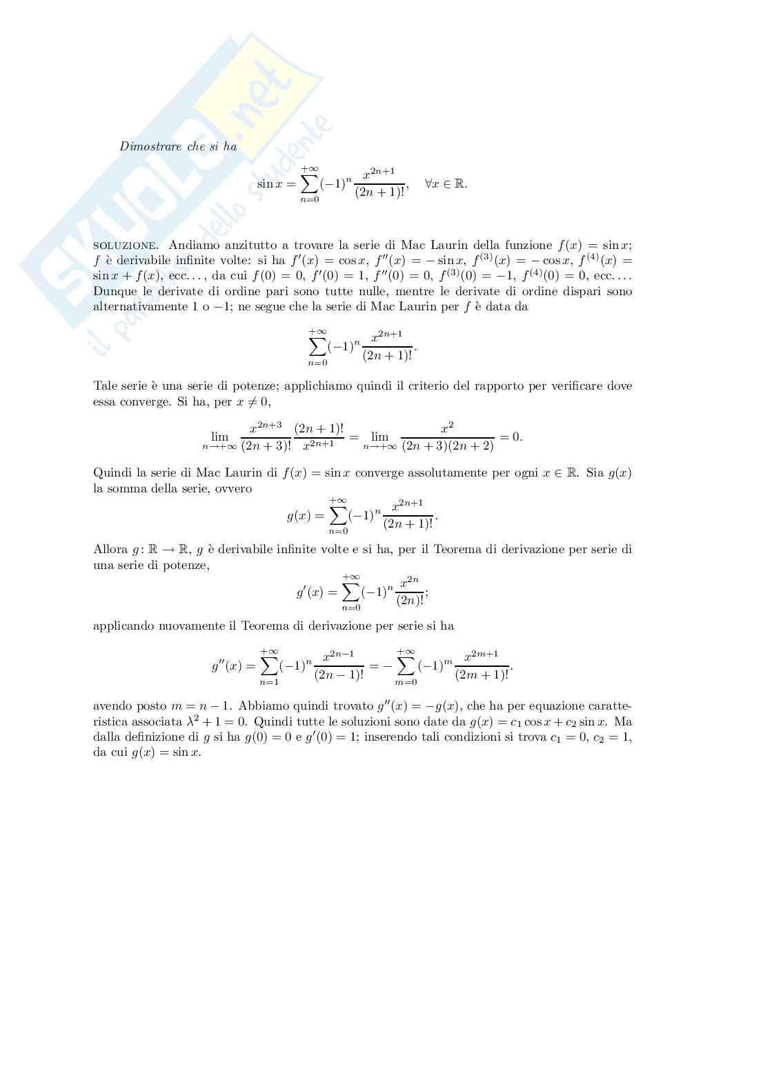 Serie: Dimostrare che si ha [math] \sin{{x}}={\sum_{{{n}={0}}}^{{+\infty}}}{\left(-{1}\right)}^{n}\frac{{x}^{{{2}{n}+{1}}}}{{{\left({2}{n}+{1}\right)}!}},\forall{x}\in\mathbb{R} [/math]