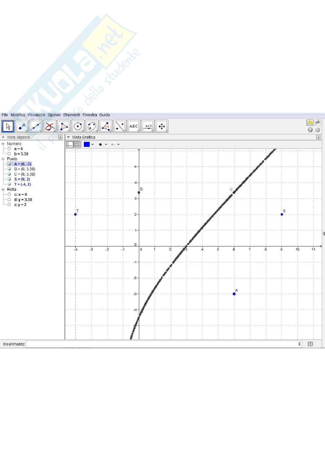 Tracciare la retta passante per i punti: