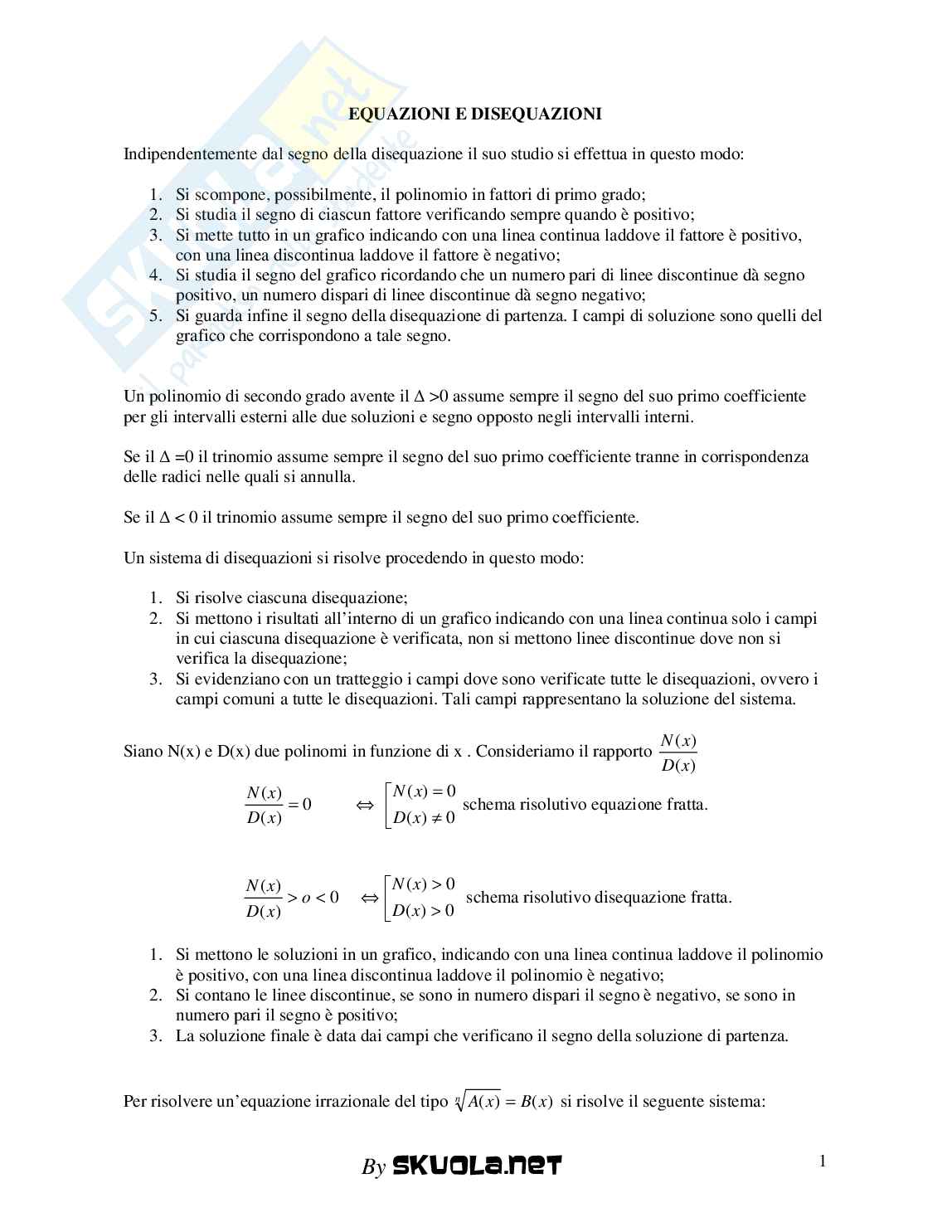 EQUAZIONI E DISEQUAZIONI