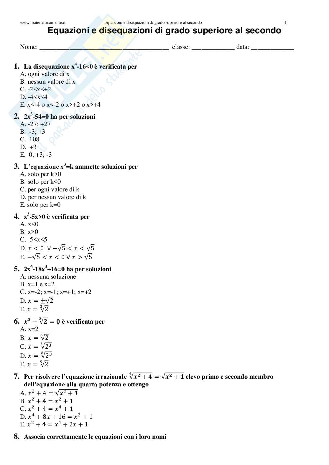 www.matematicamente.it Equazioni e disequazioni di grado superiore al secondo 1