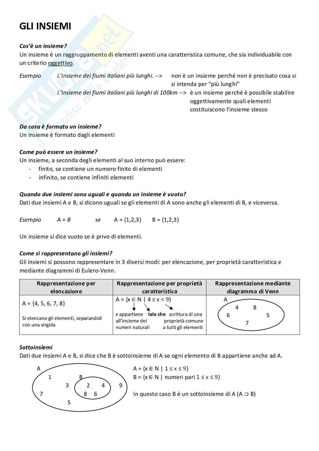 Un insieme è un raggruppamento di elementi aventi una caratteristica comune, che sia individuabile con un criterio oggettivo.