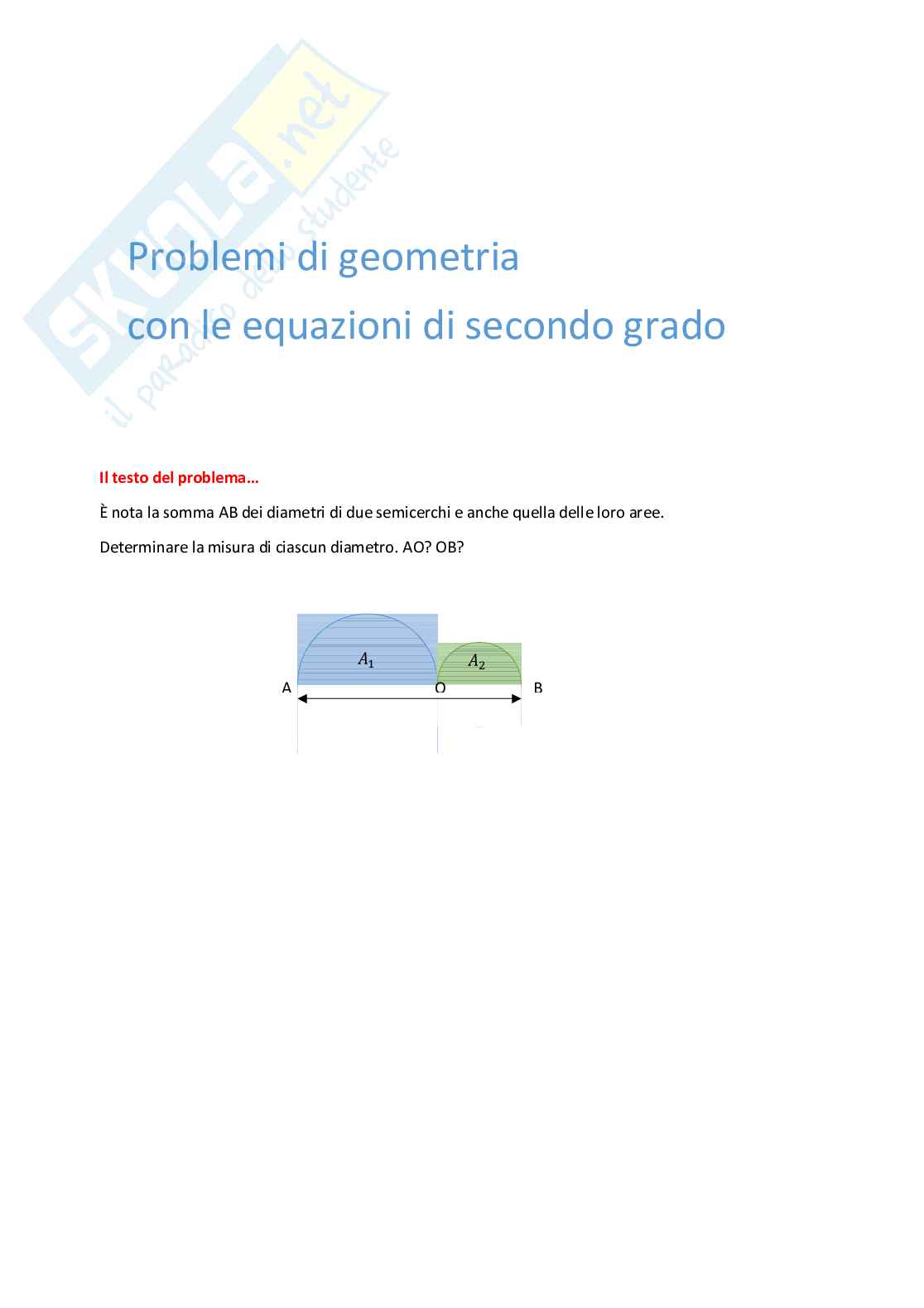 "E' data la somma AB dei diametri di due semicerchi e anche quella delle loro aree. Si chiede di calcolare la misura della lunghezza di ciascun diametro."
