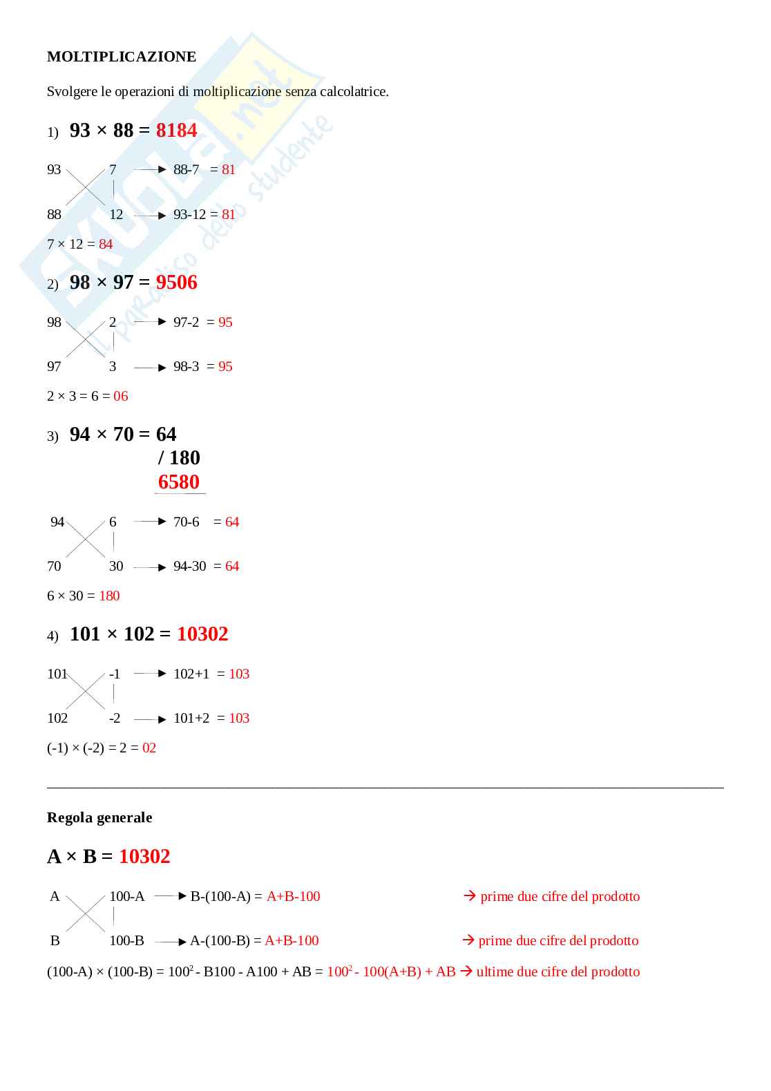 Ci sono tanti modi per fare questo compito; in particolare, questa regola permette di eseguire la moltiplicazione effettuando solo le operazioni di addizione e sottrazione.