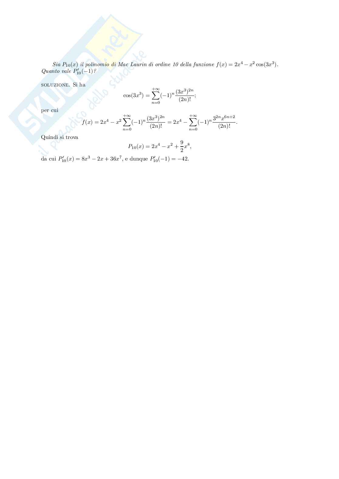 Serie: Sia [math]{P}_{{{10}}}{\left({x}\right)}[/math] il polinomio di Mac Laurin di ordine 10 della funzione [math]f{{\left({x}\right)}}={2}{x}^{4}-{x}^{2} \cos{{\left({3}{x}^{3}\right)}}[/math].