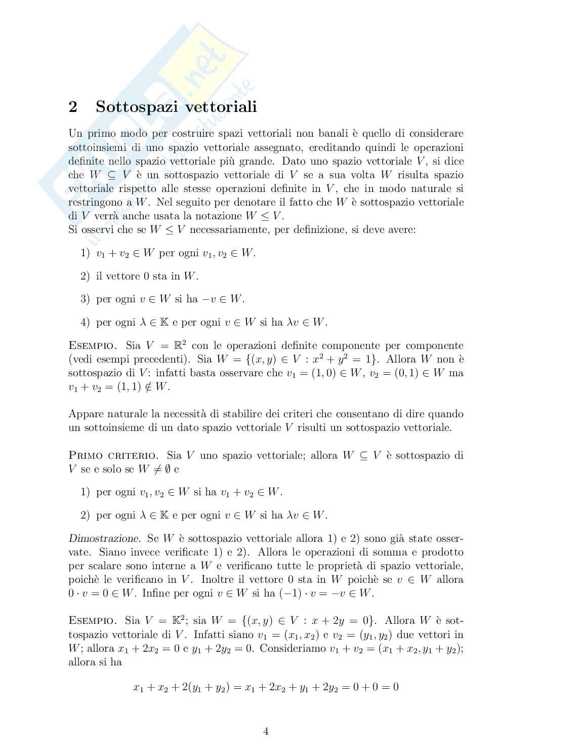 che W V è un sottospazio vettoriale di V se a sua volta W risulta spazio