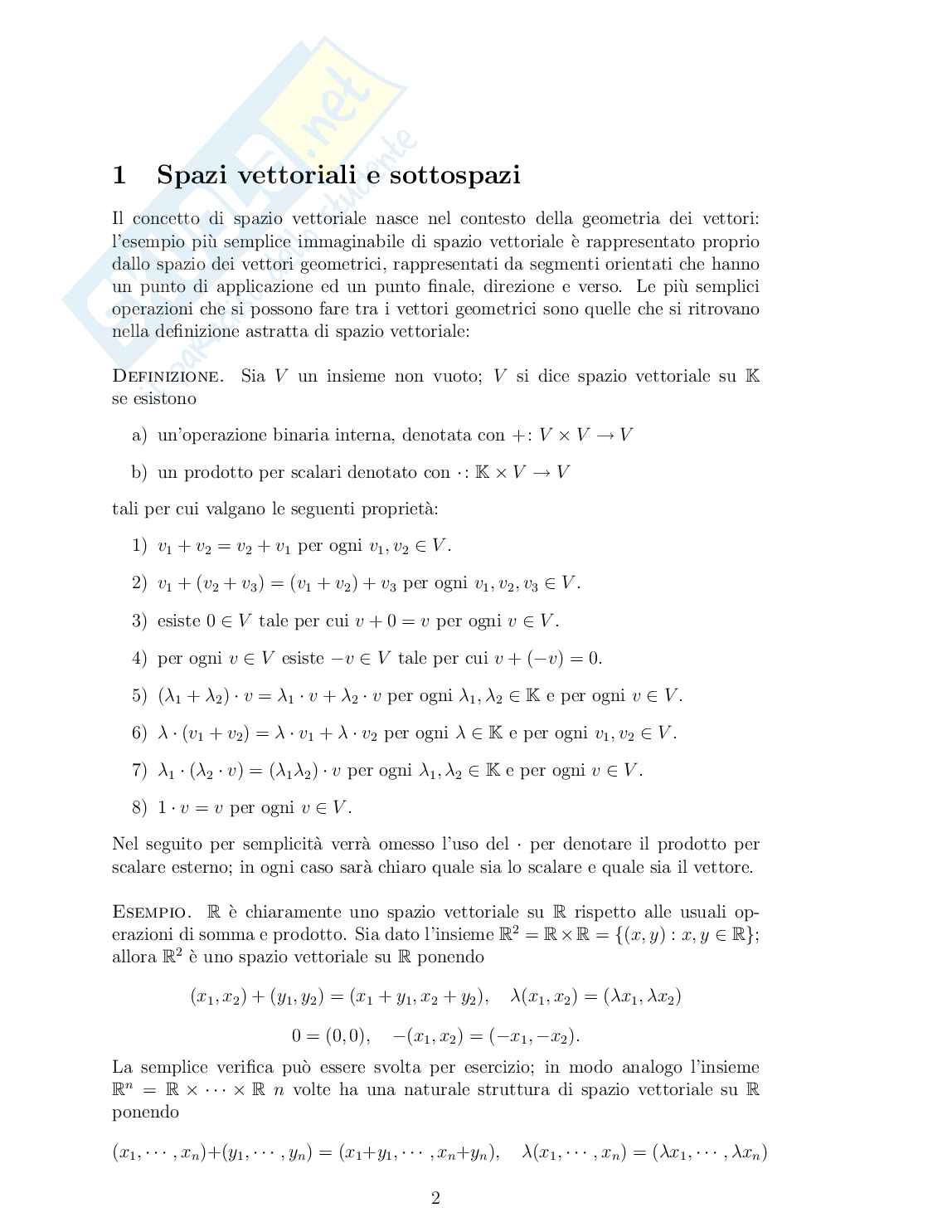 Sia V un insieme non vuoto; V si dice spazio vettoriale su