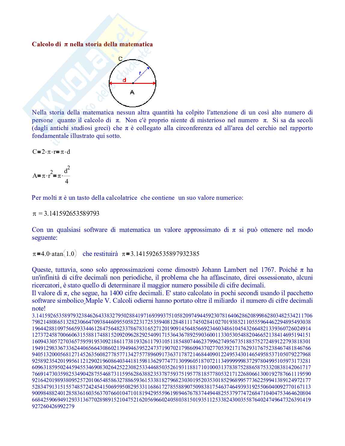 persone quanto il calcolo di π. Non c'è proprio niente di misterioso nel numero π. Si sa da secoli