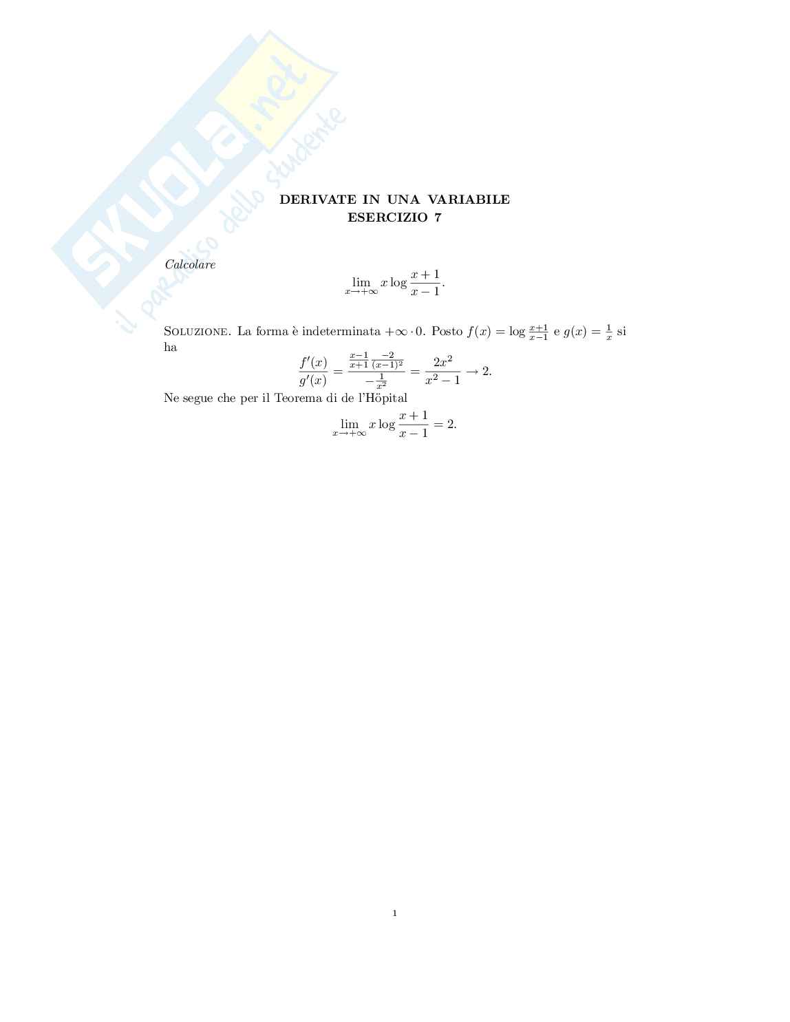 Poniamo f x quale località x più uno fratto x x x allora il limite della forma indeterminata zero zero. Possiamo applicare l'Hopital se verifichiamo che f primo tratto il primo limite f, primo fra tutti primo tratto derivato dal denominatore.