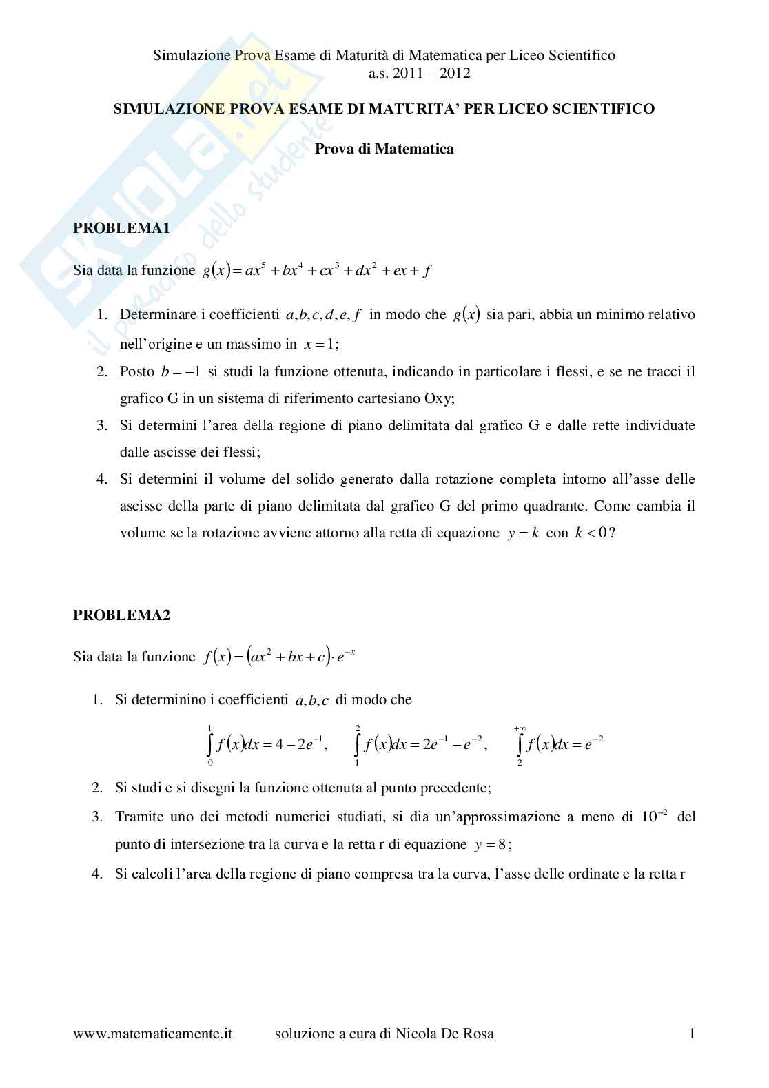 Simulazione Prova Esame di Maturità di Matematica per Liceo Scientifico