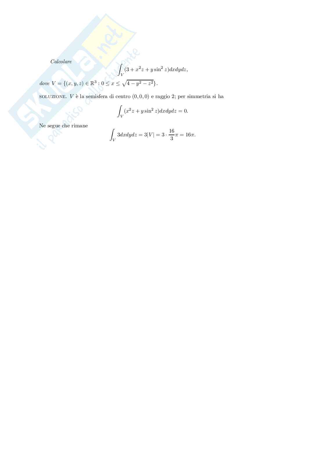 Integrali: [math] \int_{{{V}}}{\left({3}+{x}^{2}{z}+{y}{{\sin}^{2}{z}}\right)}{\left.{d}{x}\right.}{\left.{d}{y}\right.}{\left.{d}{z}\right.} [/math] Pag. 1