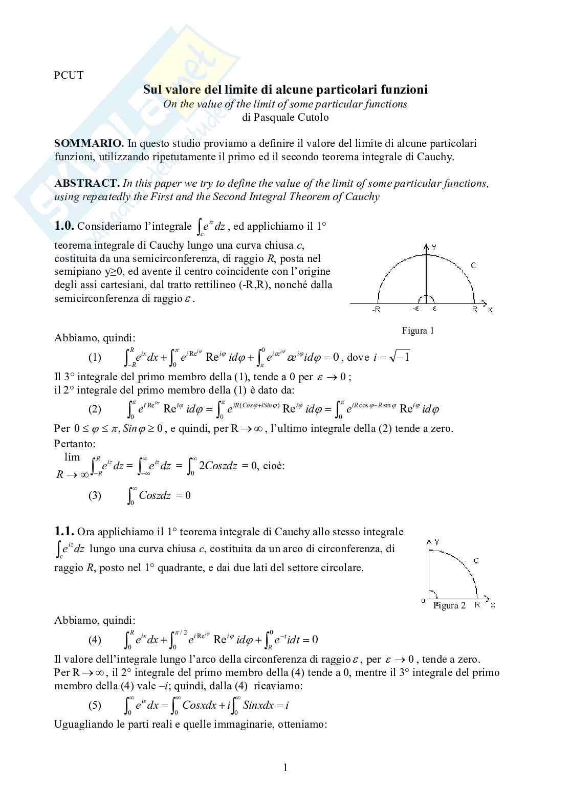 In questo studio proviamo a definire il valore del limite di alcune particolari funzioni, utilizzando ripetutamente il primo ed il secondo teorema integrale di Cauchy.