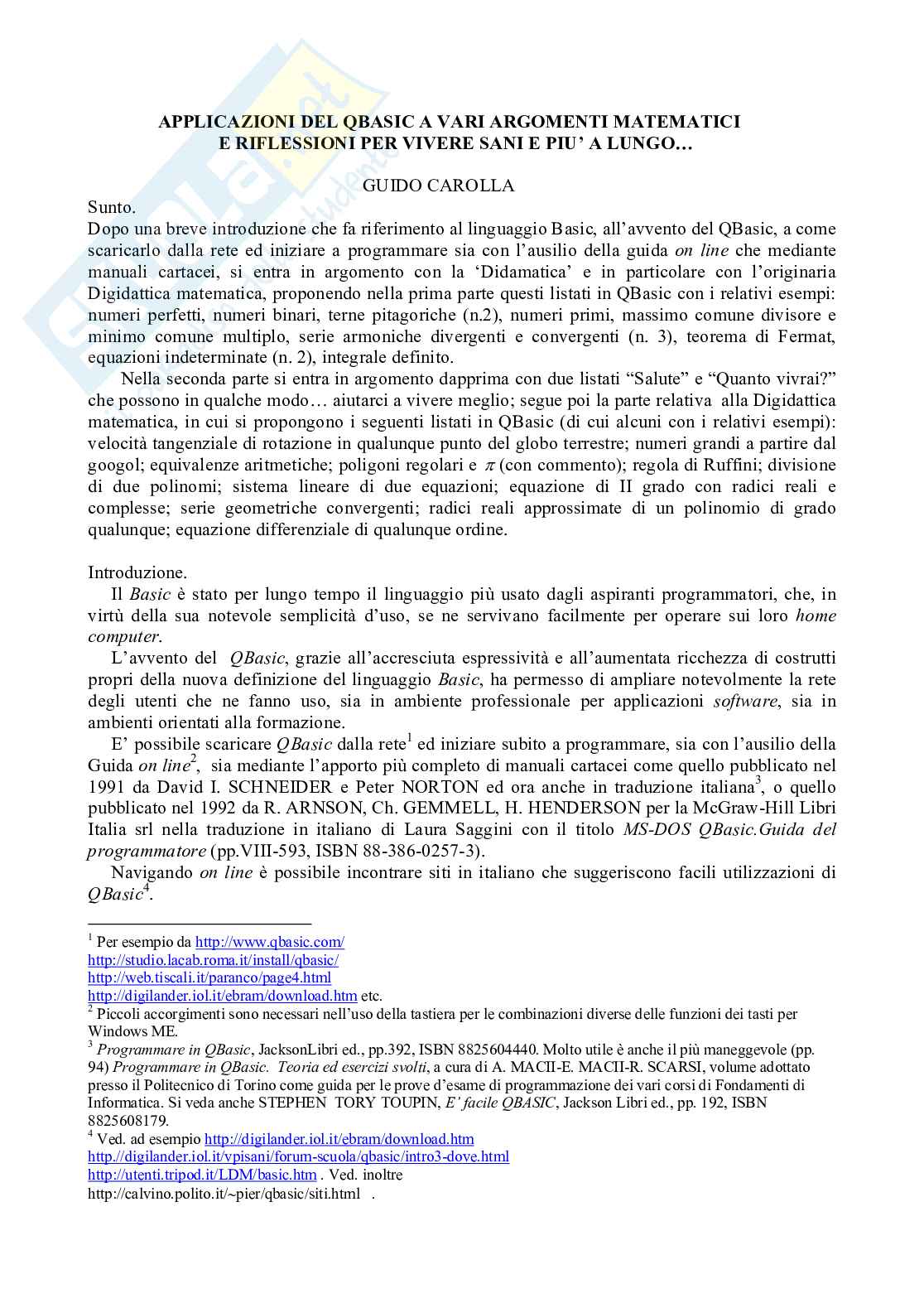Allo scopo di rendere più immediata l’interpretazione del programma sotto riportato nel linguaggio QBasic si