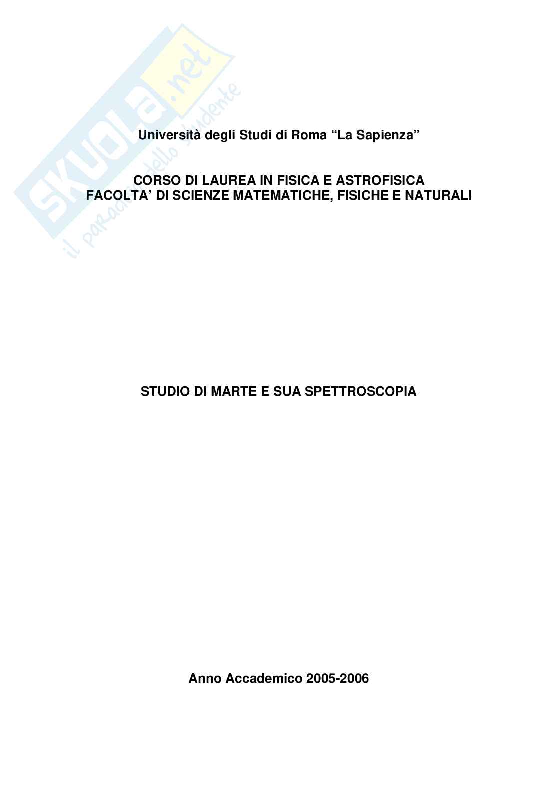 Il seguente lavoro si propone di evidenziare come lo studio della superficie di Marte è un compito che va trattato tramite la combinazione di tecniche di “remote sensing” (telerilevamento), tecniche “in situ” e tecniche di laboratorio quali analisi spettroscopiche di campioni di origine conosciuta; tale integrazione fornisce un’analisi approfondita e univoca del luogo in esame, permettendo di realizzare un metodo complesso di studio che consenta di eliminare a priori le ambiguità derivanti dalla sola analisi spettroscopica dall’orbita. Questa tesi partecipa al concorso .