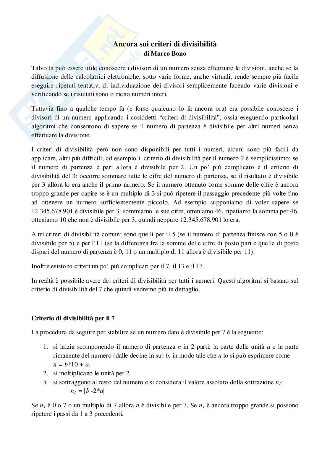Scarica l'articolo di Marco Bono sui criteri di divisibilit