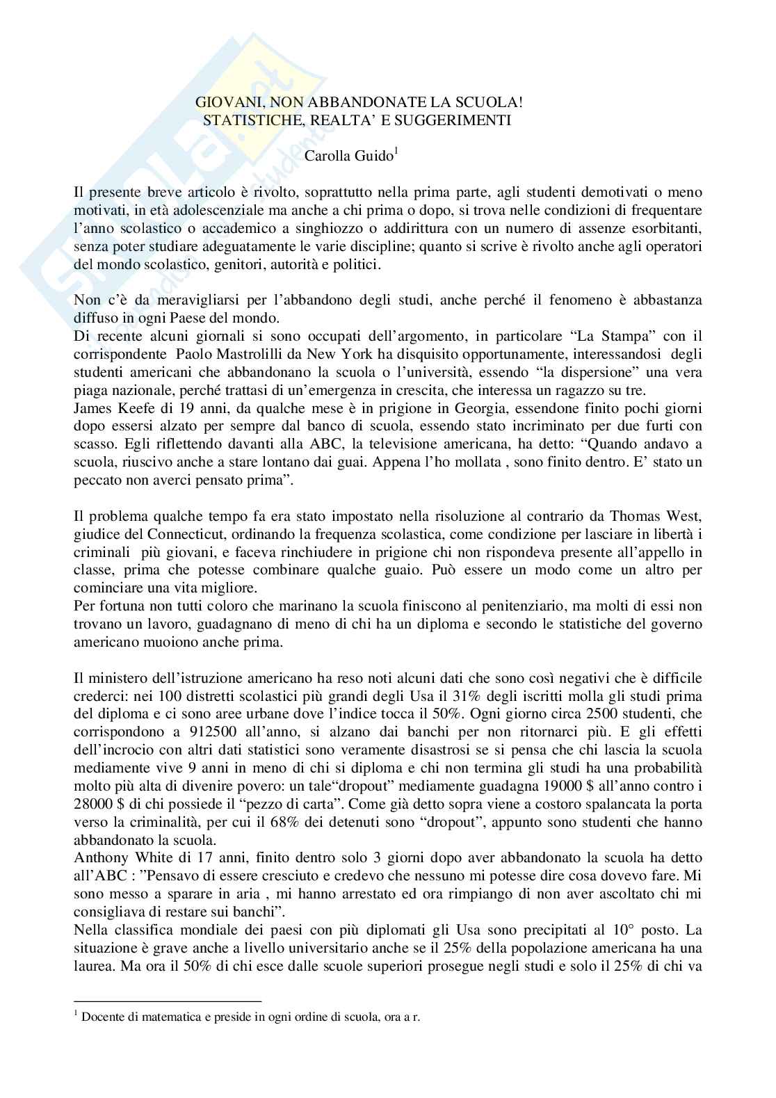 Il presente breve articolo è rivolto, soprattutto nella prima parte, agli studenti demotivati o meno