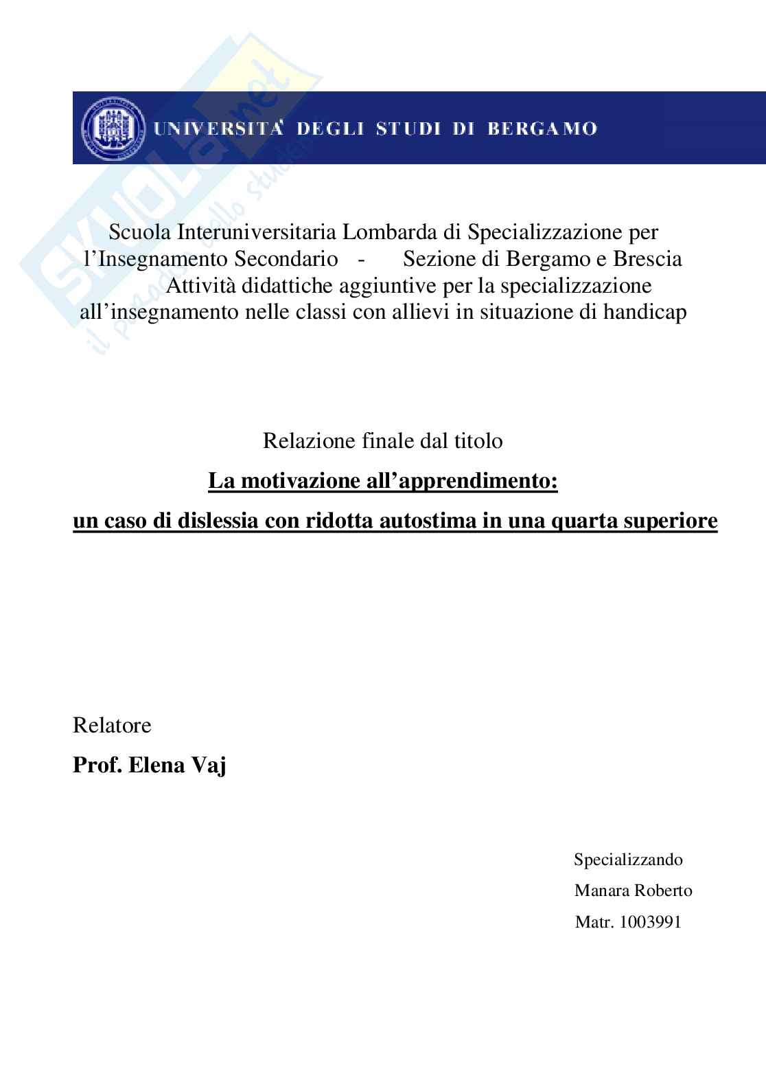 tecnico servizi ristorativi. La dislessia gli è stata diagnosticata in 3-4 elementare e quindi gli è stato