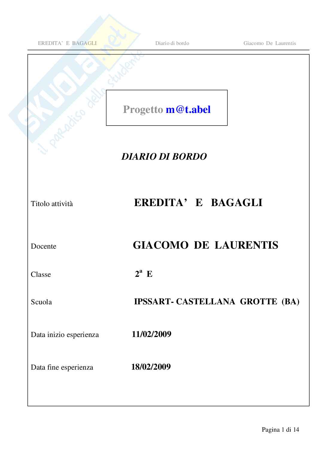 EREDITA’ E BAGAGLI Diario di bordo Giacomo De Laurentis
