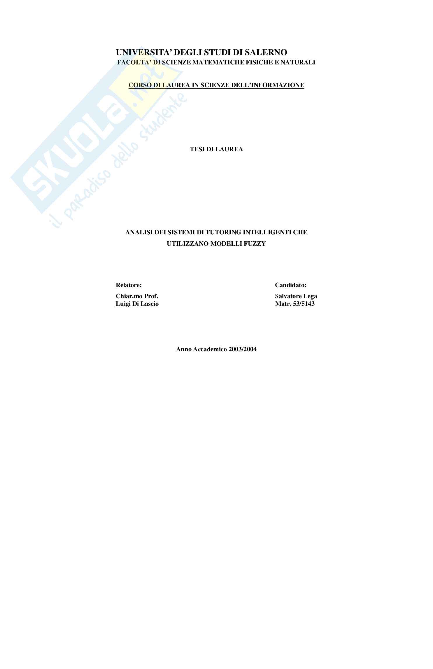 Scarica la tesi: Analisi dei sistemi di tutoring intelligenti che utilizzano modelli Fuzzy