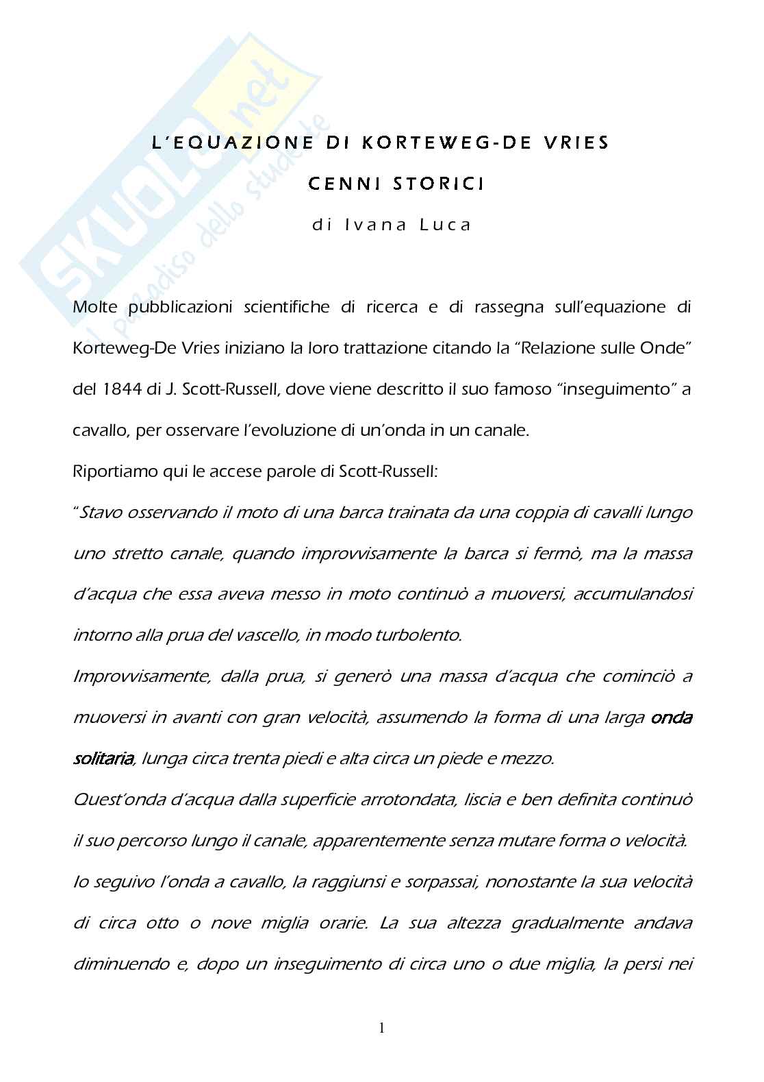 conosciuta come l’equazione di KdV. Gustav de Vries dedicò molta della sua