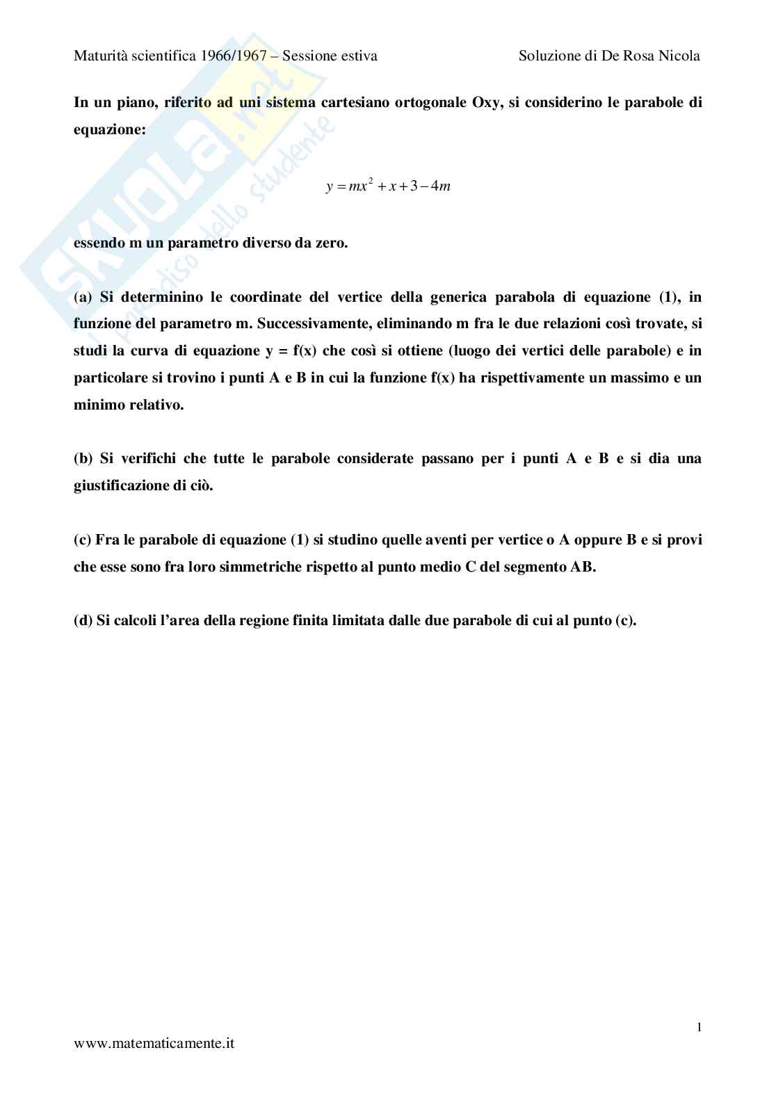 Maturità scientifica 1966/1967 – Sessione estiva Soluzione di De Rosa Nicola