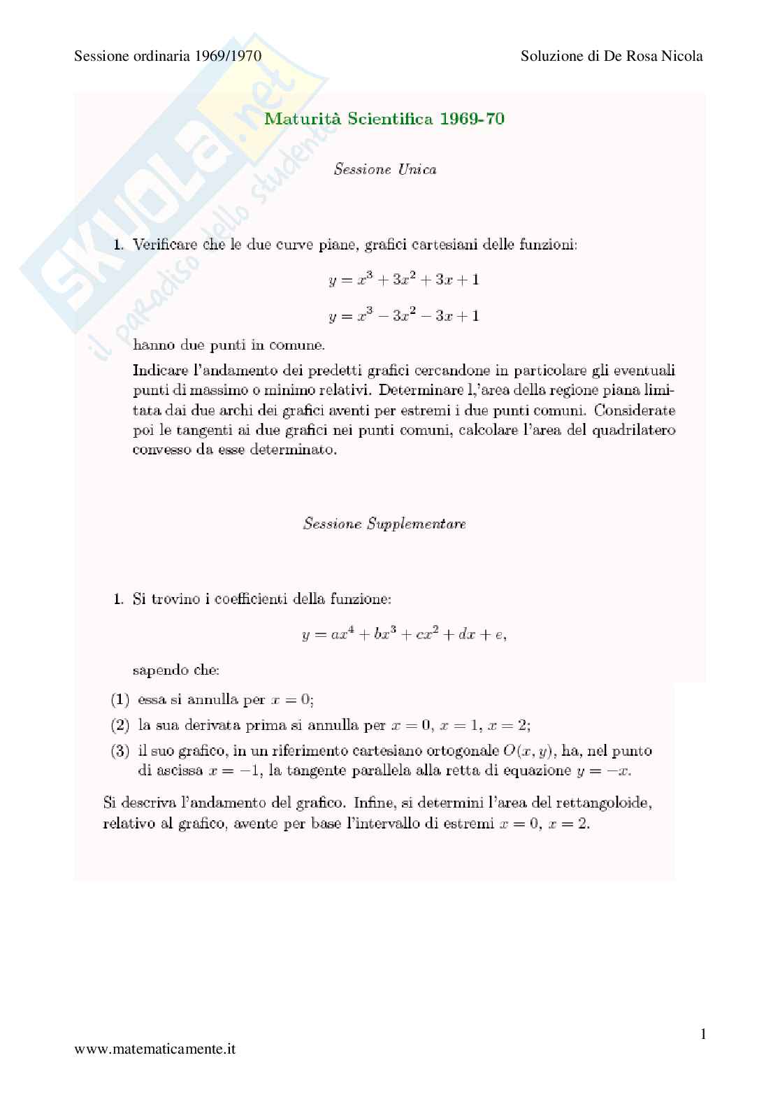 Sessione ordinaria 1969/1970 Soluzione di De Rosa Nicola