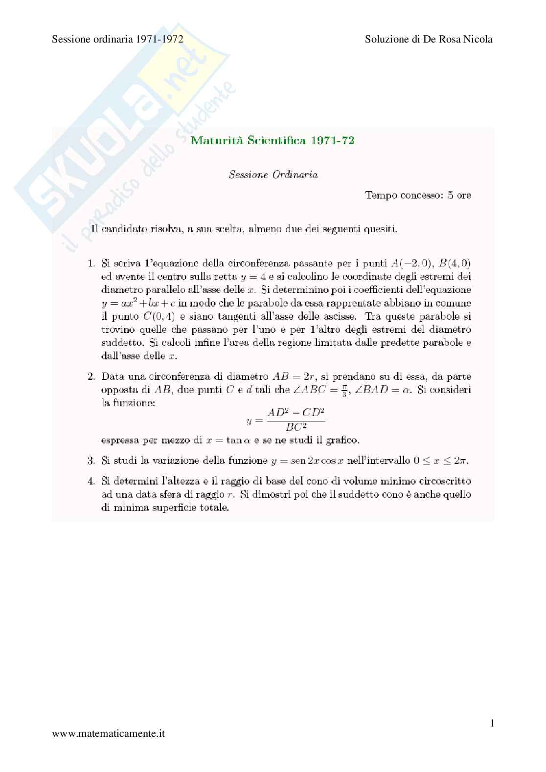 Sessione ordinaria 1971-1972 Soluzione di De Rosa Nicola