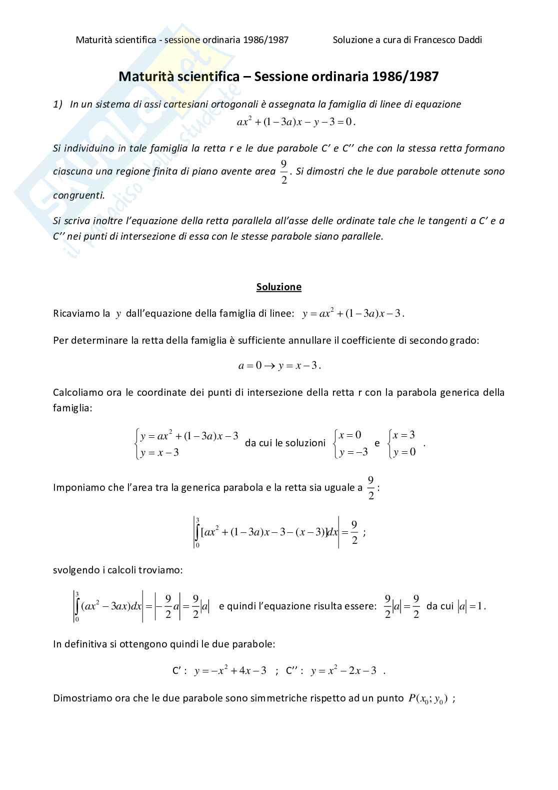 Maturità scientifica ‐ sessione ordinaria 1986/1987 Soluzione a cura di Francesco Daddi