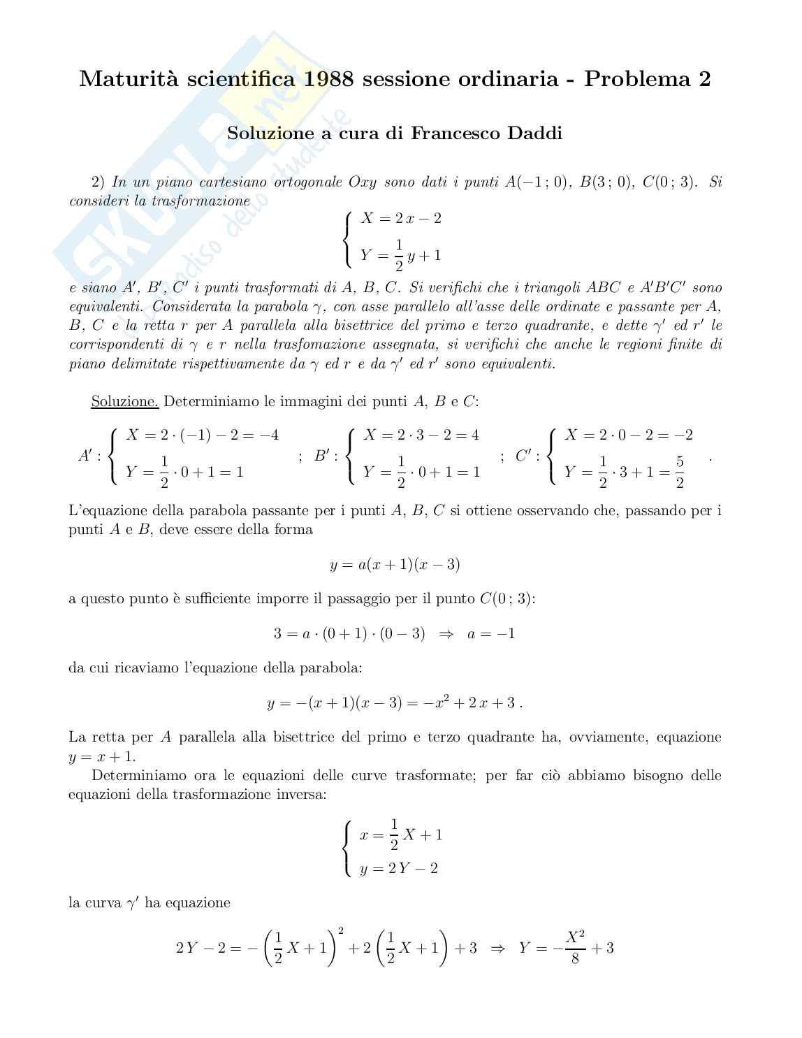 L’equazione della parabola passante per i punti A, B, C si ottiene osservando che, passando per i