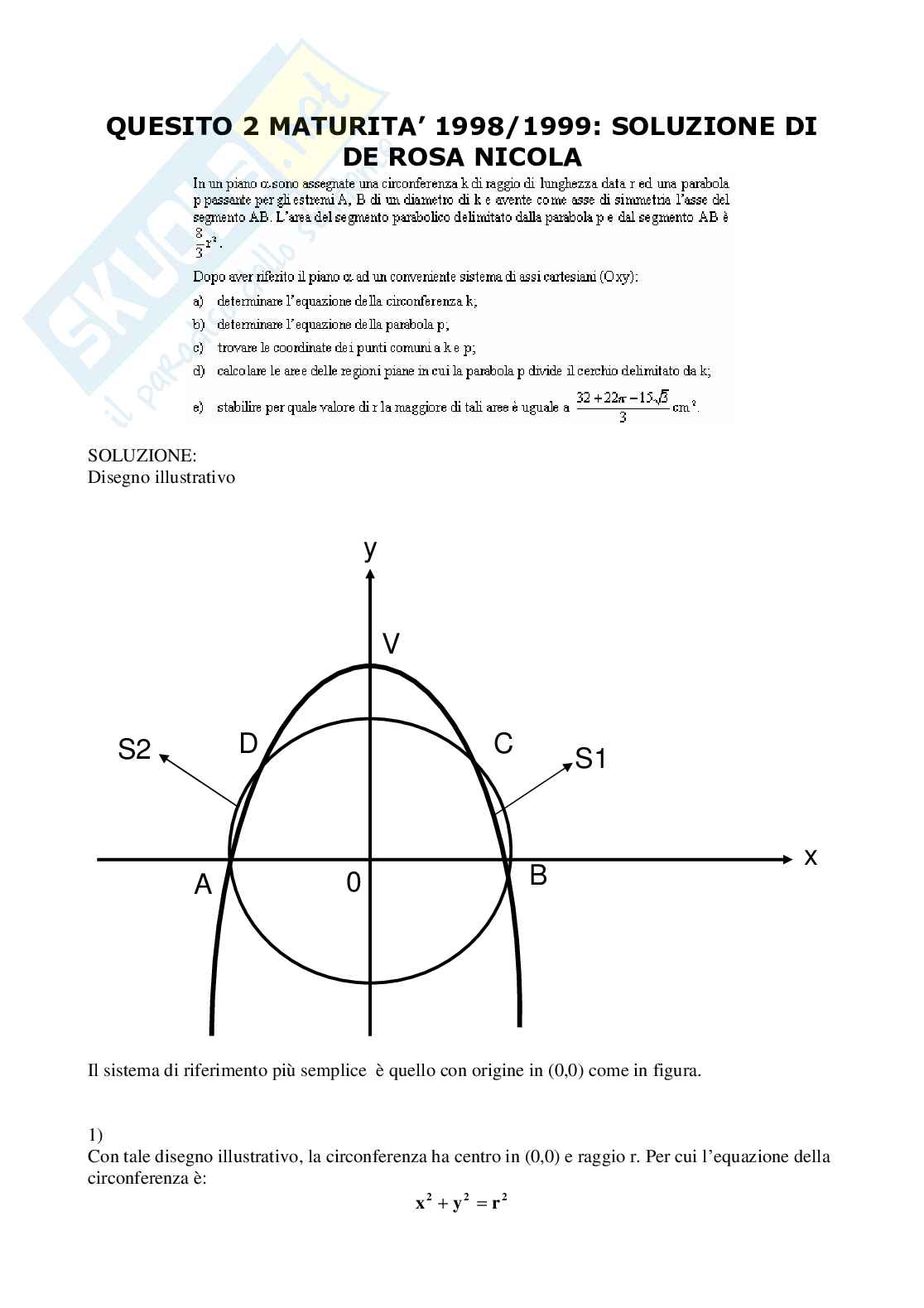 L’ultima condizione è sul segmento parabolico di area assegnata che comporta: