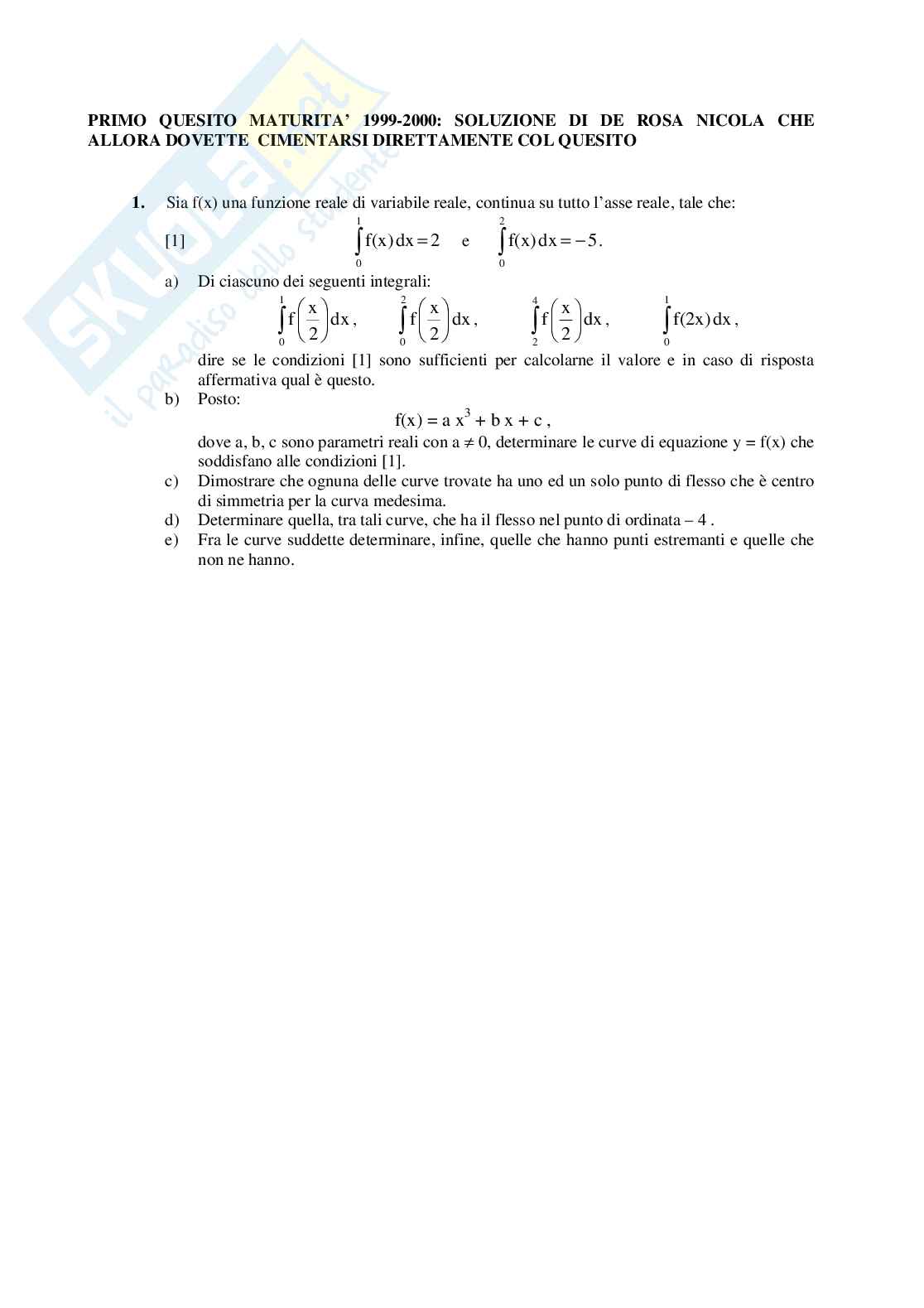 f dx f t dt Non ci sono condizioni sufficient i per calcolarlo