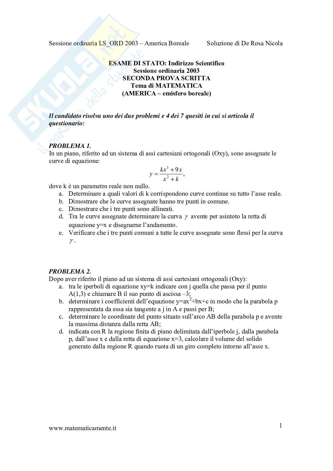 Sessione ordinaria LS_ORD 2003 – America Boreale Soluzione di De Rosa Nicola