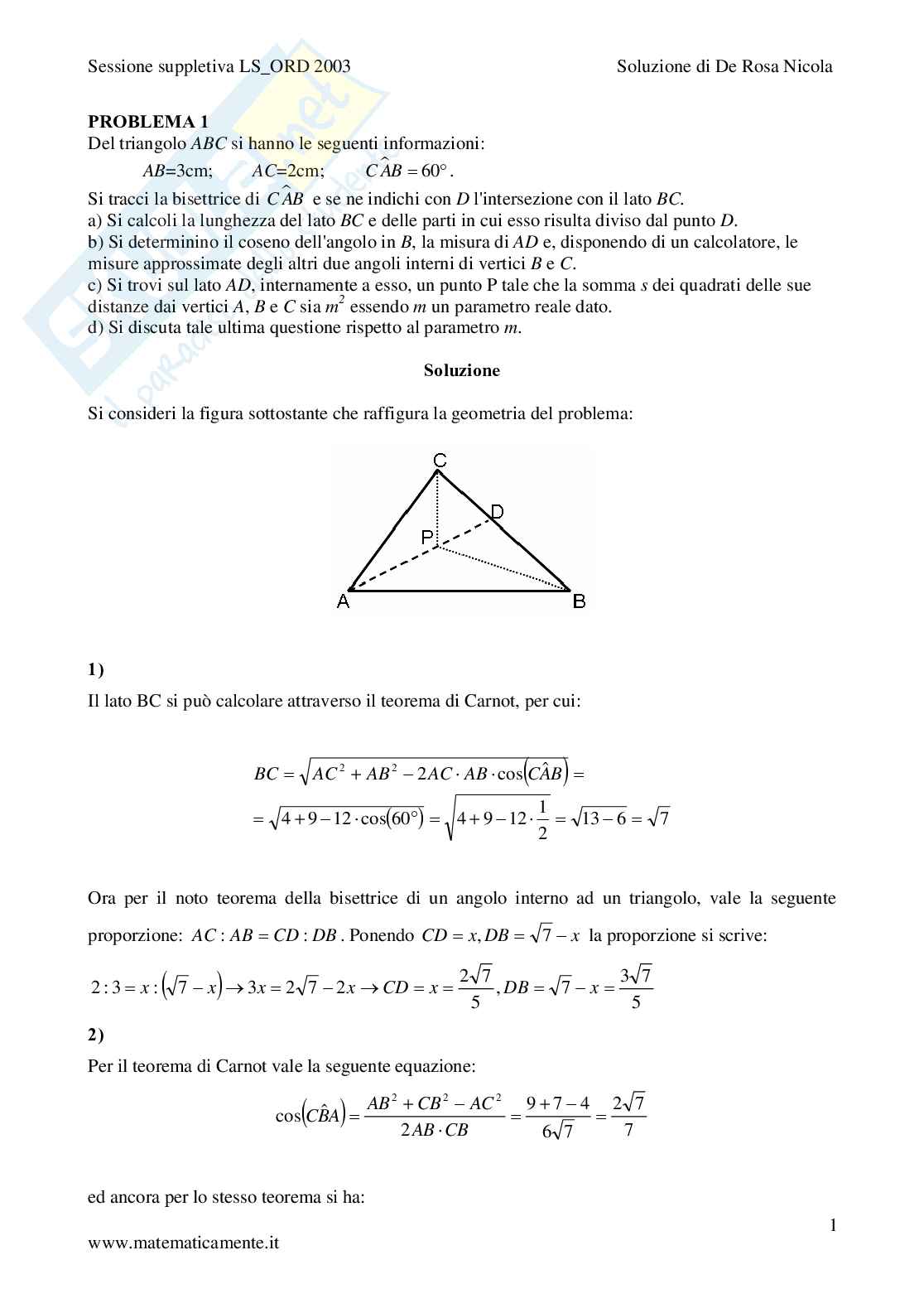Sessione suppletiva LS_ORD 2003 Soluzione di De Rosa Nicola