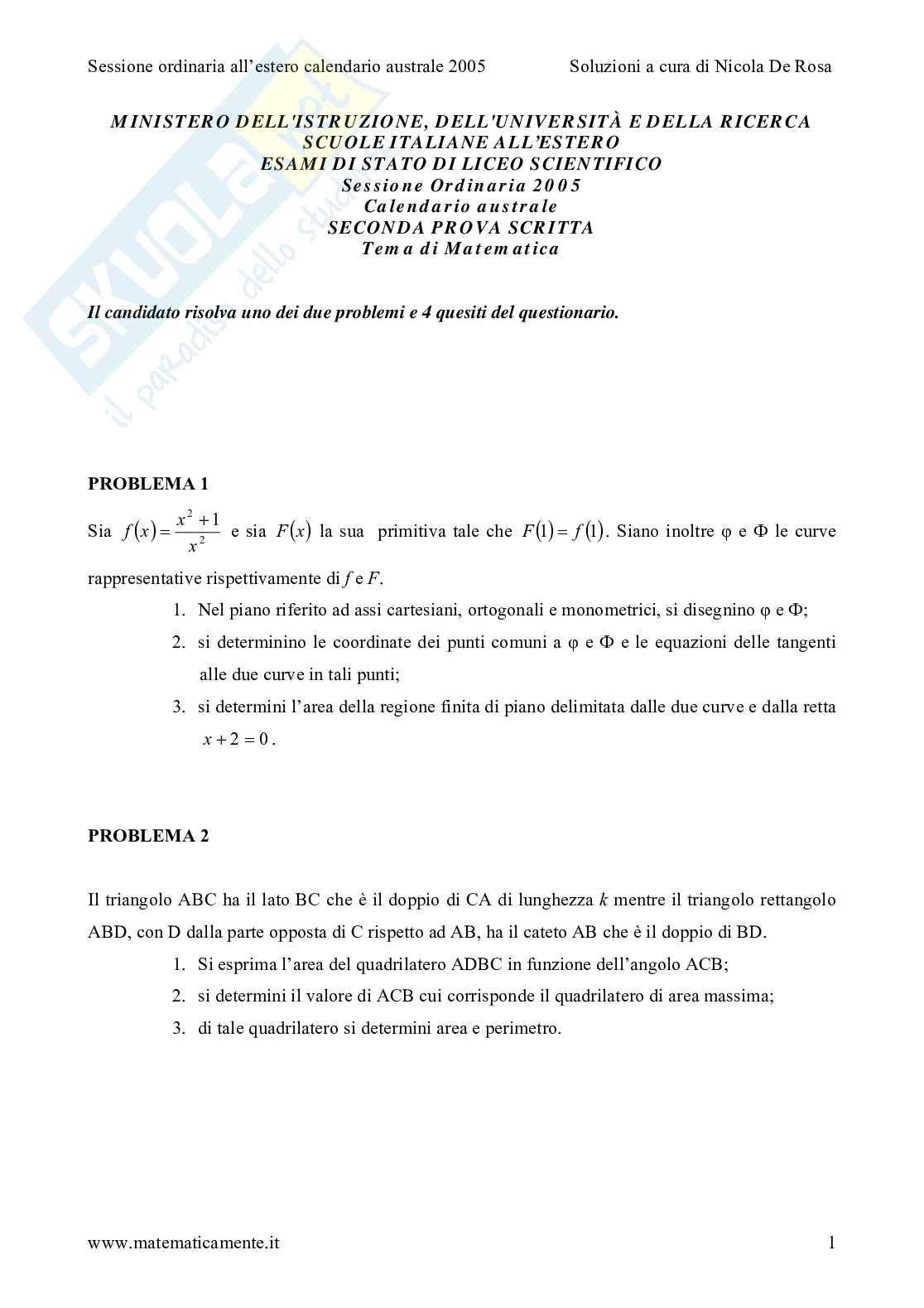Sessione ordinaria all’estero calendario australe 2005 Soluzioni a cura di Nicola De Rosa