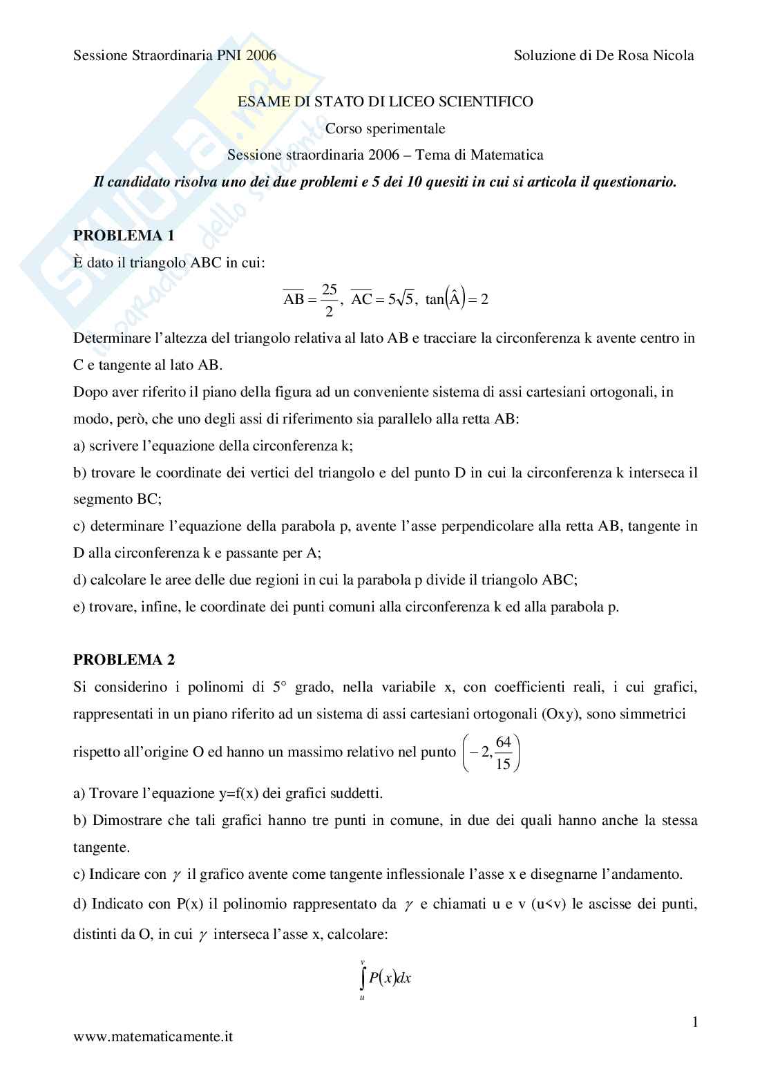 Sessione Straordinaria PNI 2006 Soluzione di De Rosa Nicola