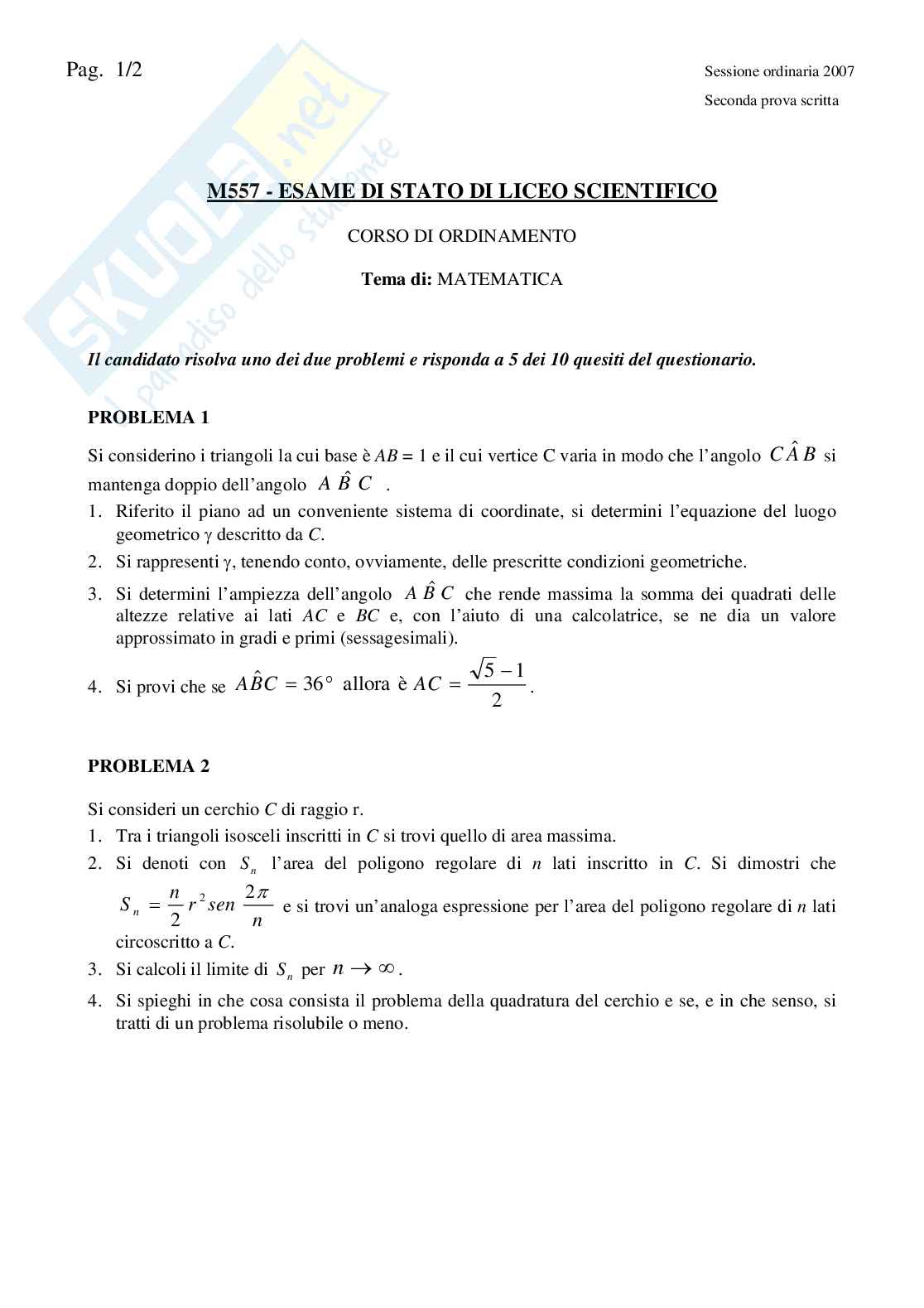 Nicola De Rosa Liceo scientifico di ordinamento anno 2007