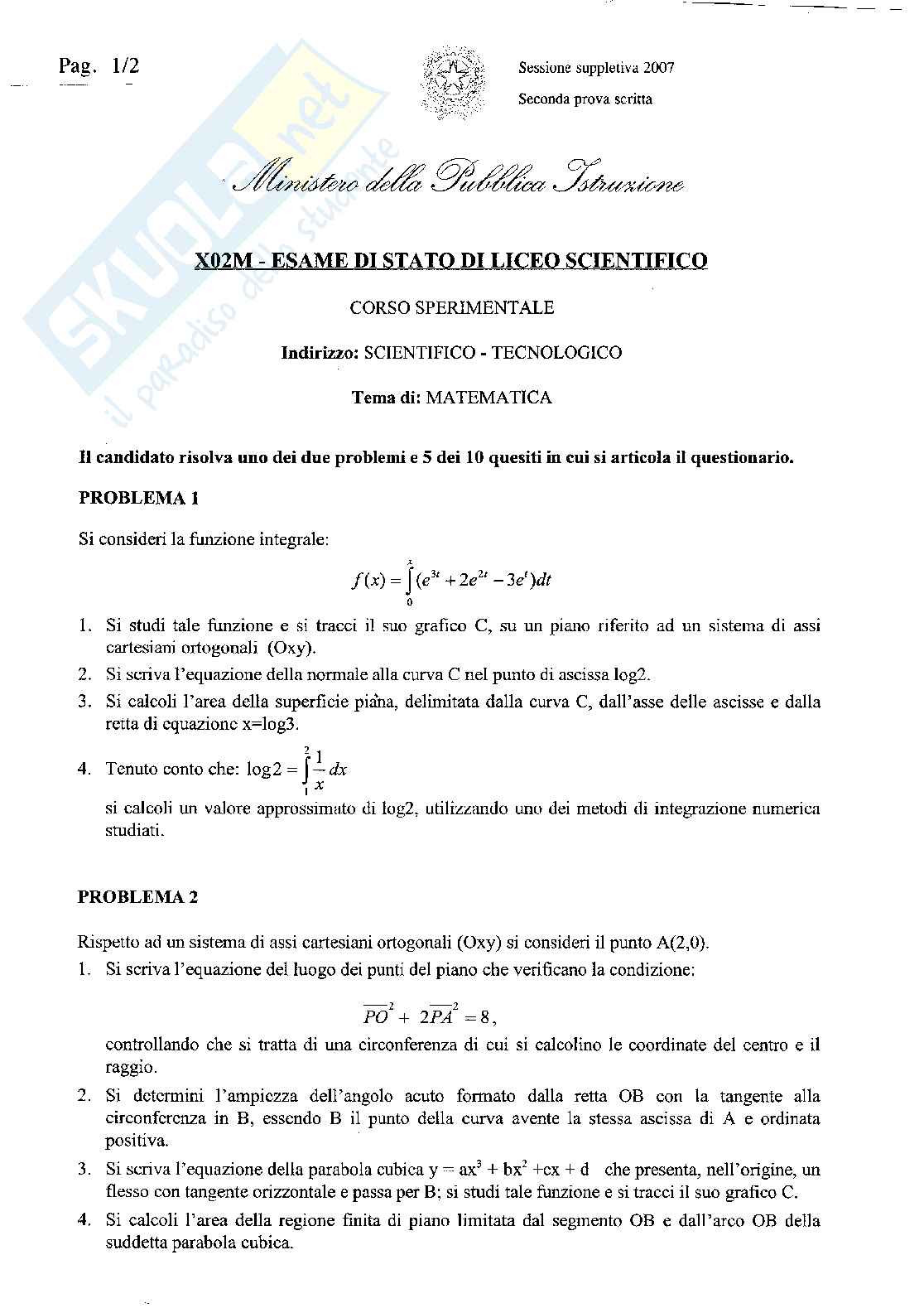 Nicola De Rosa Liceo scientifico PNI prova suppletiva 2007