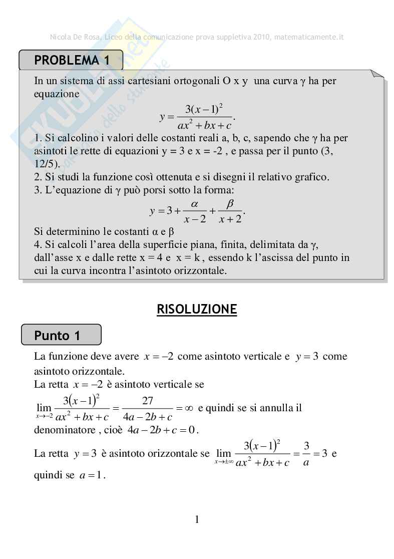 Nicola De Rosa, Liceo della comunicazione prova suppletiva 2010, matematicamente.it