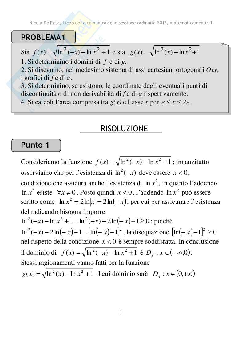Nicola De Rosa, Liceo della comunicazione sessione ordinaria 2012, matematicamente.it