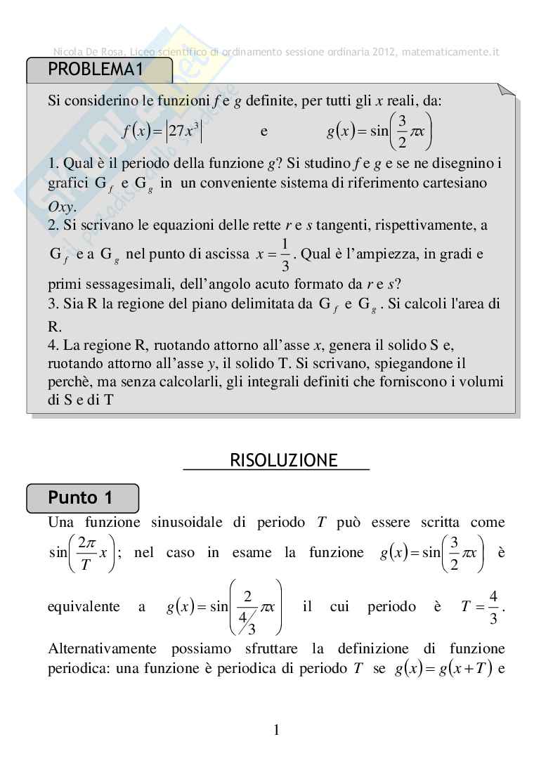 Nicola De Rosa, Liceo scientifico di ordinamento sessione ordinaria 2012, matematicamente.it