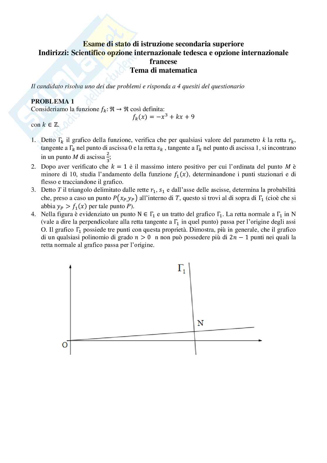 2018 Tema di matematica, sessione ordinaria (indirizzi: scientifico opzione internazionale tedesca e opzione internazionale francese) Pag. 1 2018 Tema di matematica, sessione ordinaria (indirizzi: scientifico opzione internazionale tedesca e opzione internazionale francese) Pag. 2