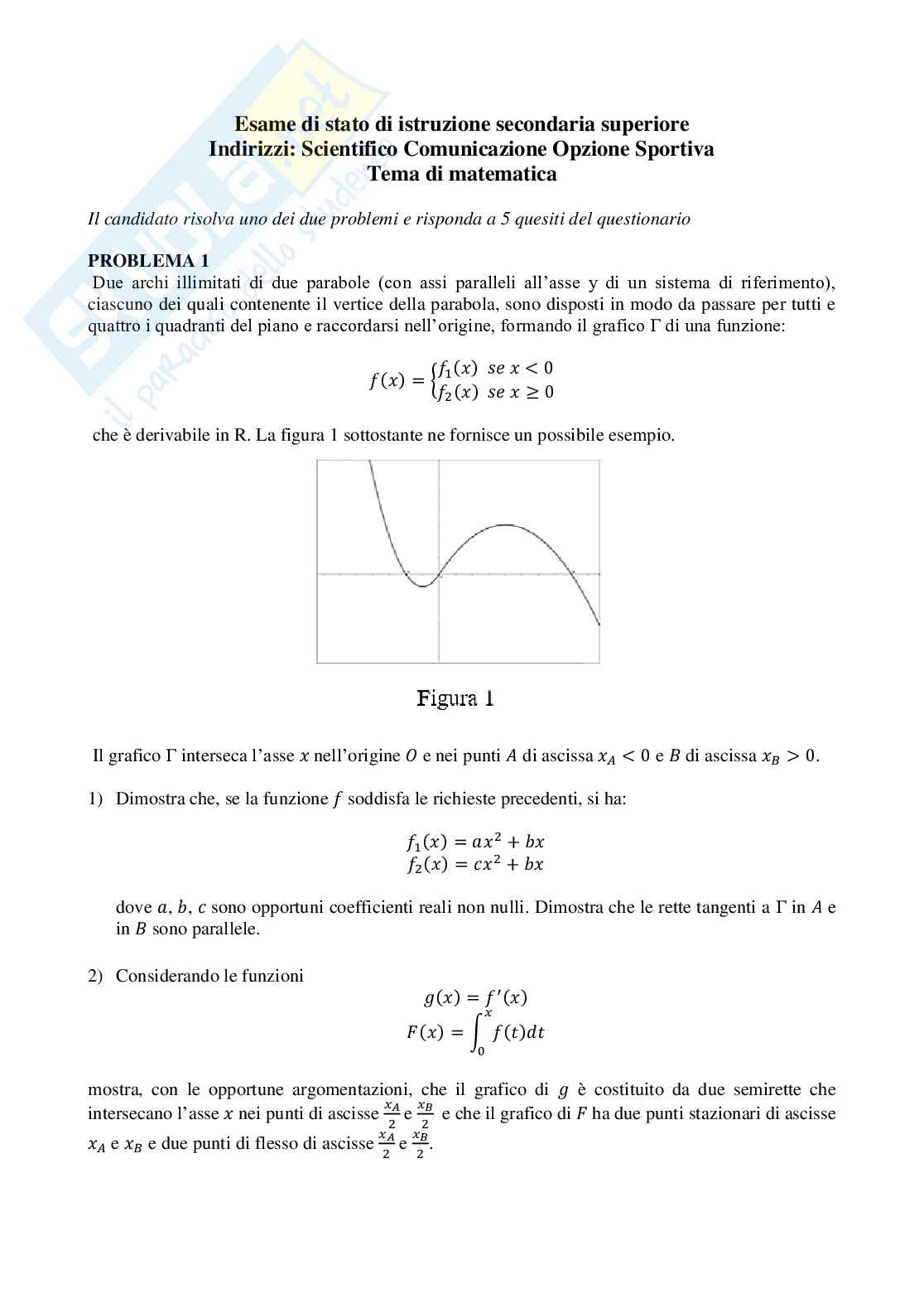 2018 Tema di matematica, sessione straordinaria (indirizzi: scientifico comunicazione opzione sportiva) Pag. 1 2018 Tema di matematica, sessione straordinaria (indirizzi: scientifico comunicazione opzione sportiva) Pag. 2