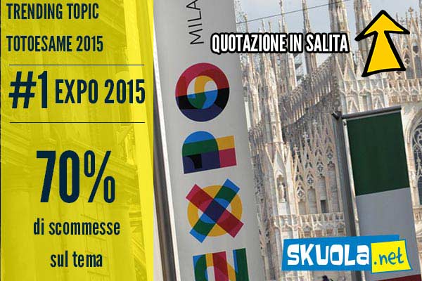 ATTUALITA': EXPO IN SALITA- Tra le possibili tracce di temi di attualità su cui il Miur vorrebbe provare i maturandi, con il 70% di scommesse si guadagnava il primo posto l’Expo 2015 che scavalca l’Isis, primo tra i temi papabili nel toto tracce maturità 2015 di marzo.