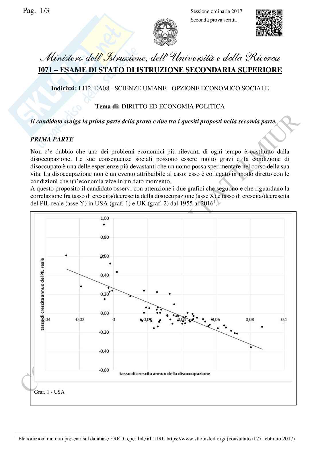 Al candidato viene proposto nella Prima Parte dell’esame di Stato grafici che evidenziano uno dei maggiori problemi economici di sempre: la disoccupazione. Precisamente viene richiesto di osservare con molta attenzione i due grafici proposti i quali indicano il tasso di crescita e/o decrescita del fenomeno della disoccupazione negli Stati Uniti d’America e nel Regno Unito in un lasso di tempo di 61 anni e successivamente di commentarli in modo opportuno.