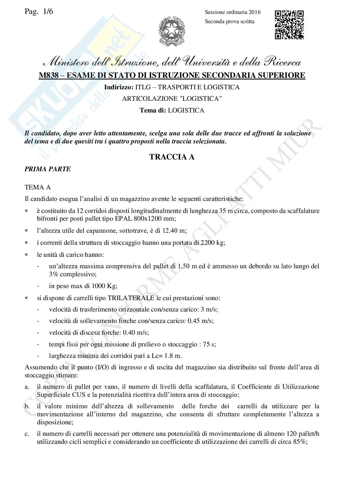 Questa traccia di Maturità 2016 non verrà risolta da Skuola.net, ma verrà risolta in maniera collaborativa, se volete potete mandarci la soluzione della seconda prova dell'istituto Trasporti e Logistica attraverso questi nostri recapiti: