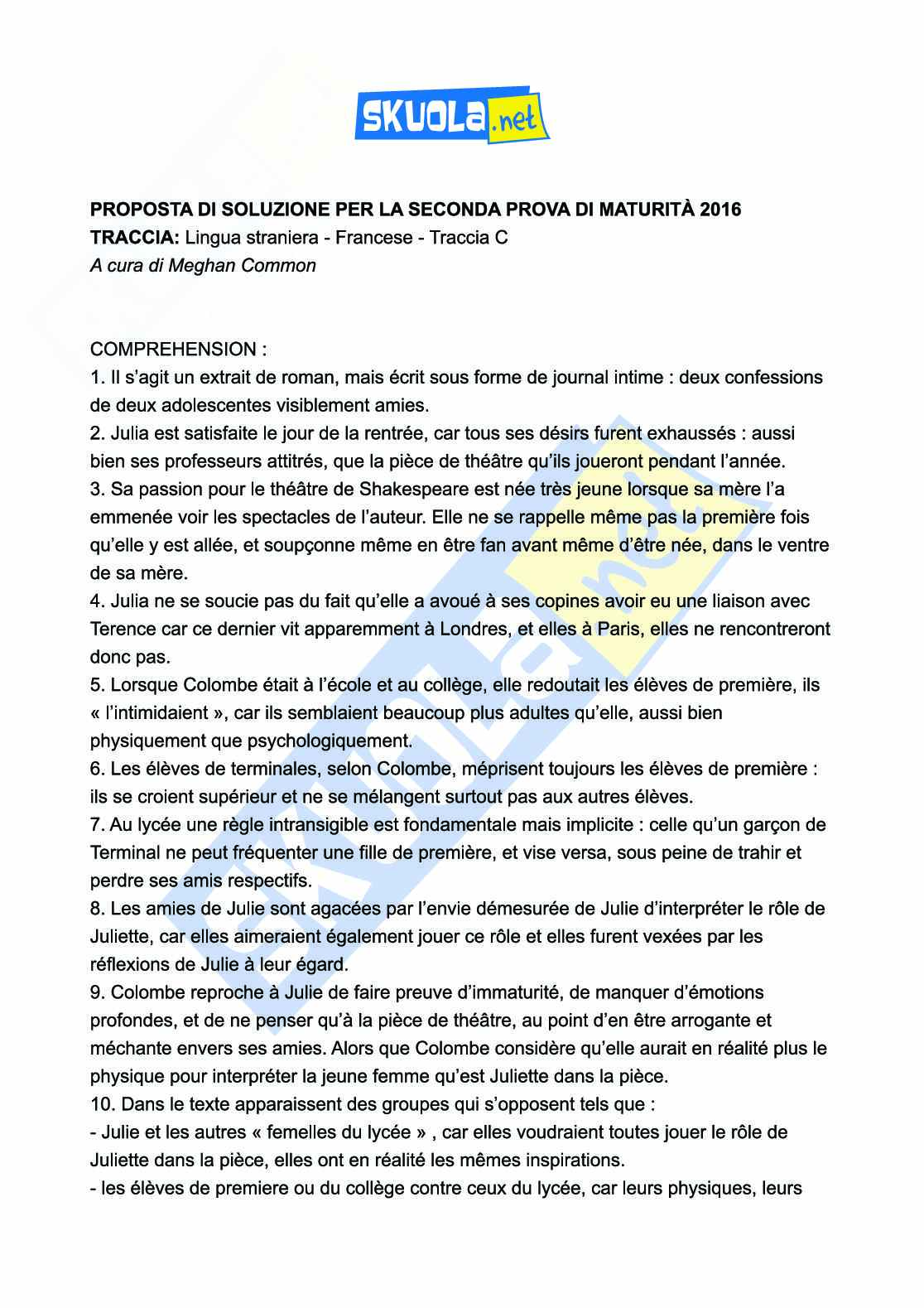 Dopo la prima prova di Maturità del 2016 di italiano, ormai il tempo di preparazione è finito e bisogna rendere tutto quello che hai imparato in questi cinque anni. Inizialmente era solo grammatica che poi è diventata la tua seconda lingua. Tutte le esercitazioni fatte in classe e tutte le interrogazioni passate avevano solo un fine: prepararti per questo grande giorno in cui dovrai fare Il compito finale migliore dei precedenti. Il compito che ti permetterà di uscire dalla scuola e dipende da esso il tuo voto. Riponi tutta la tua fiducia nelle tue capacità, nel dizionario monolingue per qualunque dubbio ma, soprattutto, puoi riporre la tua fiducia in noi che siamo sempre qui pronti per aiutarti. I nostri tutor già si stanno dando da fare ma non disperare perché sono veloci ed efficienti quindi la seconda prova Maturità 2016 sarà come bere un bicchiere d'acqua. Ora inizia la tua composizione in francese facendo vedere che Hugo in confronto a te è un dilettante. Poi leggi il testo per la comprensione molto attentamente perché sai che non è difficile come sembra a primo impatto quindi leggilo più volte. Ma bando alle ciance ecco a te le soluzioni della seconda prova di Maturità del 2016 e vedi di non sbagliare accenti relativi alle regole della grammatica francese!