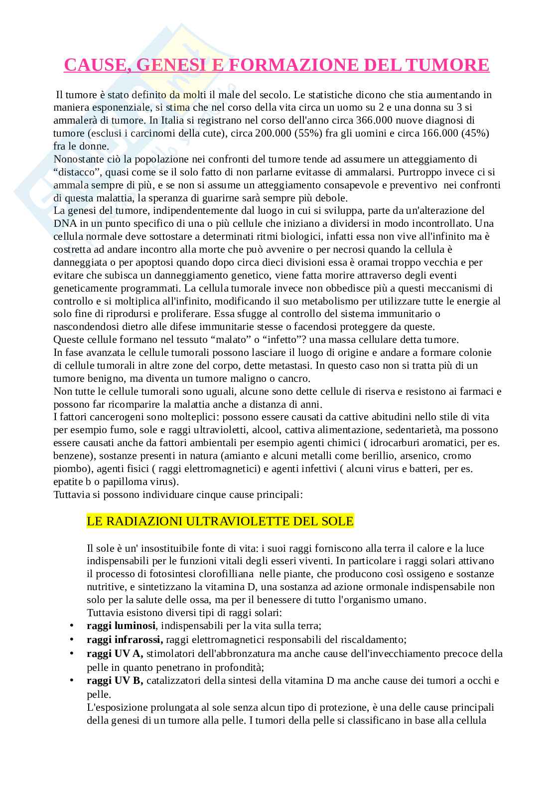 CAUSE, GENESI E FORMAZIONE DEL TUMORE